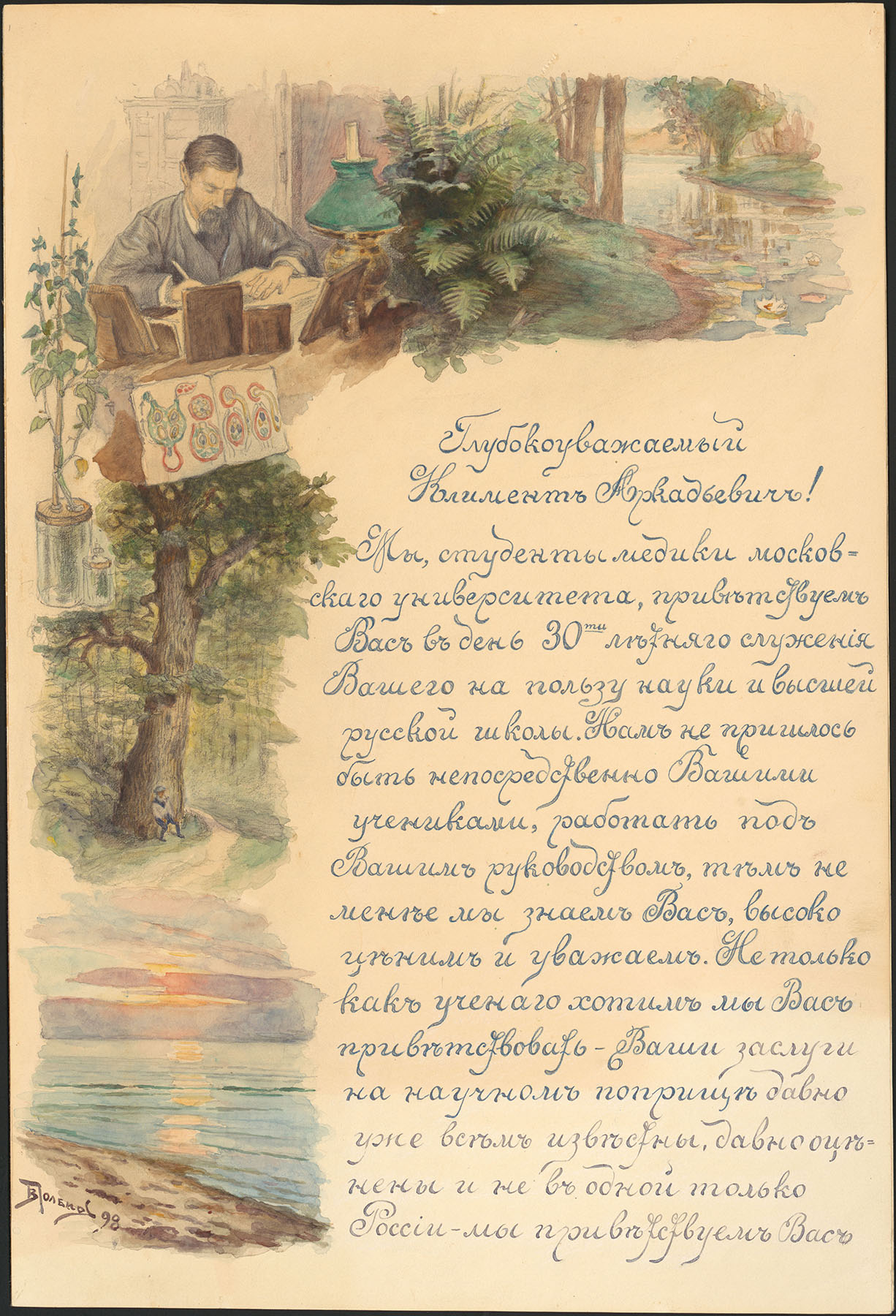 Предметы, связанные с именем Климента Аркадьевича Тимирязева, входят в разные коллекции Биологического музея. Мемориальных предметов, принадлежавших К. А. Тимирязеву, среди них нет.