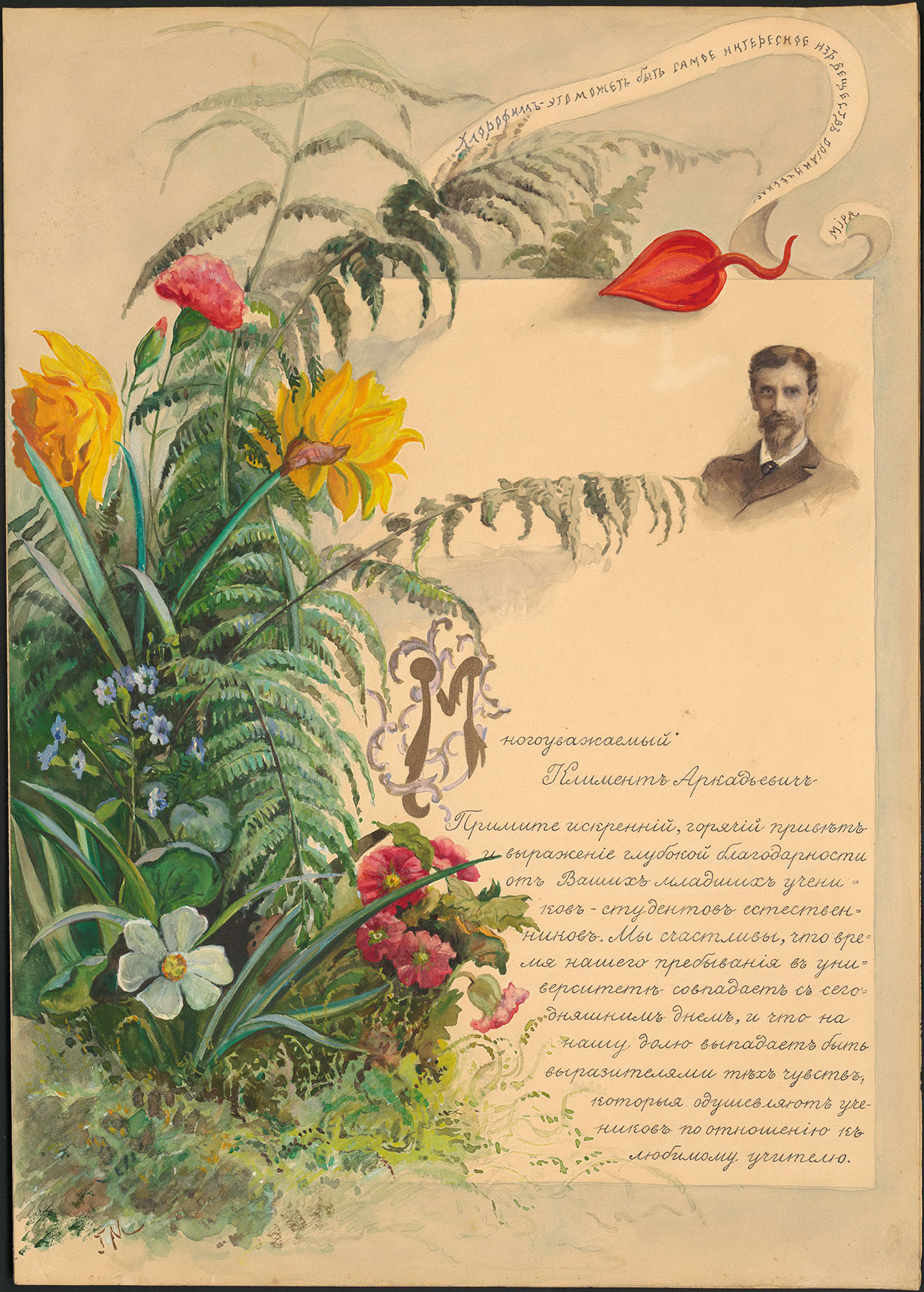 Предметы, связанные с именем Климента Аркадьевича Тимирязева, входят в разные коллекции Биологического музея. Мемориальных предметов, принадлежавших К. А. Тимирязеву, среди них нет.